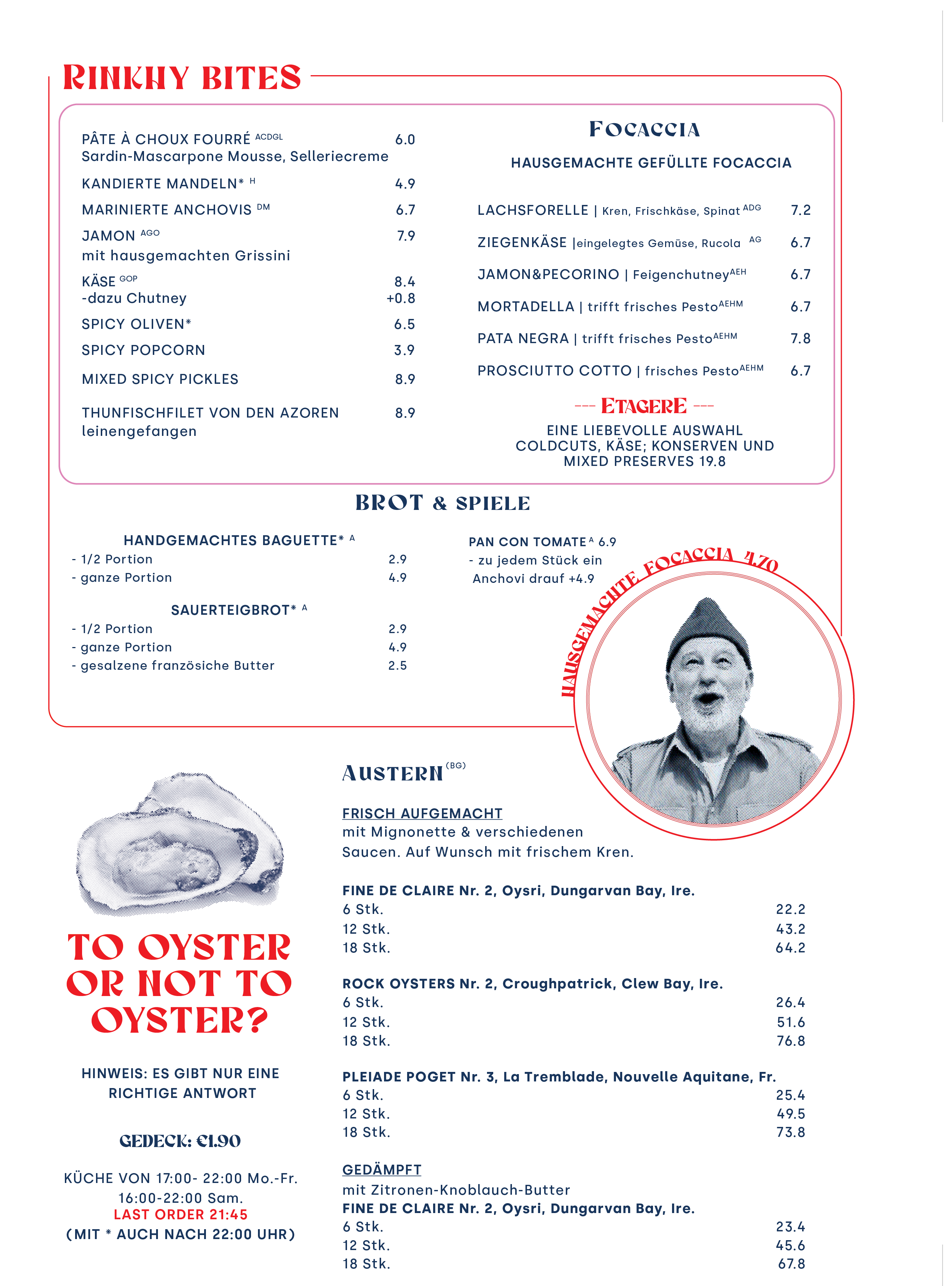 Dear Friends, Neighbours, Guests! The Little Oyster Bar is open where the original Rinkhy was located. Come by Zieglergasse 37 for Oysters, Antipasti, Drinks of all kinds, and a good time! Please see instagram.com/rinkhylittleoysterbar